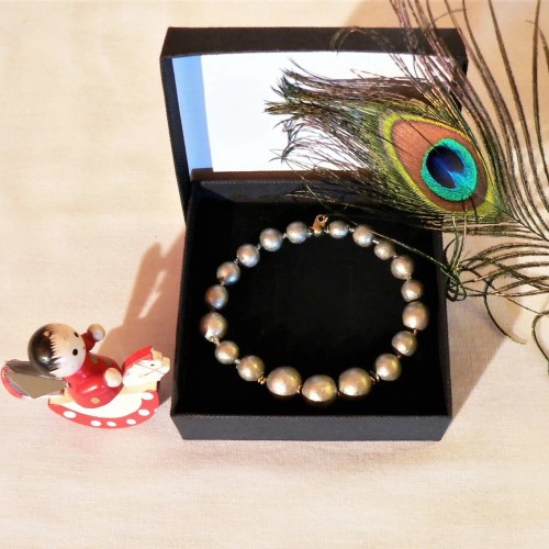 Ce bracelet composé de 19 perles dégressives en céramique est confortable et se laisse oublier par sa finesse et sa légèreté. D'un diamètre non étiré de 6,5 cm il peut convenir à une circonférence de poignet jusqu'à 19 cm Max. nombreux petits éléments ornementaux de qualité. Poids : 13 grammes, ajusté sur un fil nylon élastique blanc Rahyer de diamètre de 0,8 mm. Ce bracelet est sobre et élégant. Finitions soignées ; pour hommes ou pour femmes.