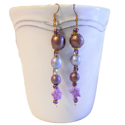 Bijoux : Boucles d'oreilles céramiques femmes,"Coquillages et Crustacés", pourpre et bleu lilas